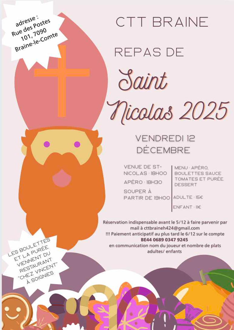 Comme chaque année, nous vous invitons à notre traditionnelle soirée de Saint Nicolas.