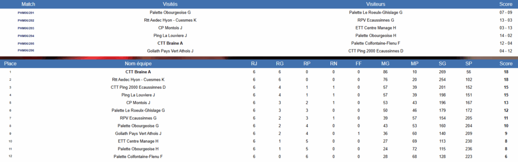affilié à l'Aile Francophone de la F.R.B.T.T. – Province de Hainaut matricule H424